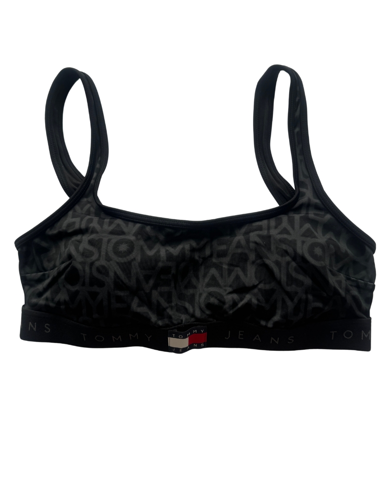 Plavková podprsenka je v efektní černé barvě s celopotiskem v tónu Tommy jeans.