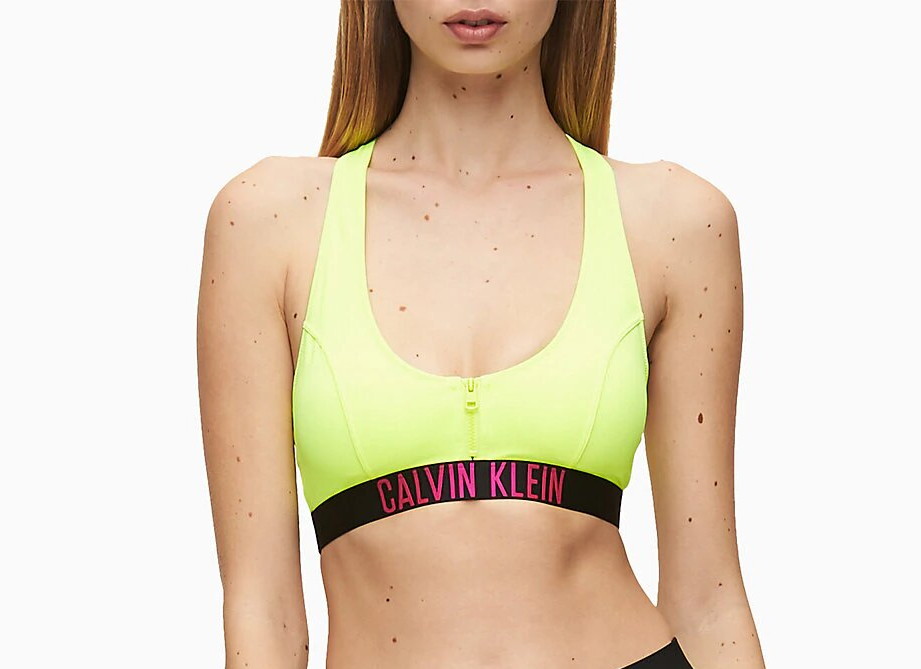 Dámské plavky Calvin Klein KW01048 ZIP BRALETTE neon zelená