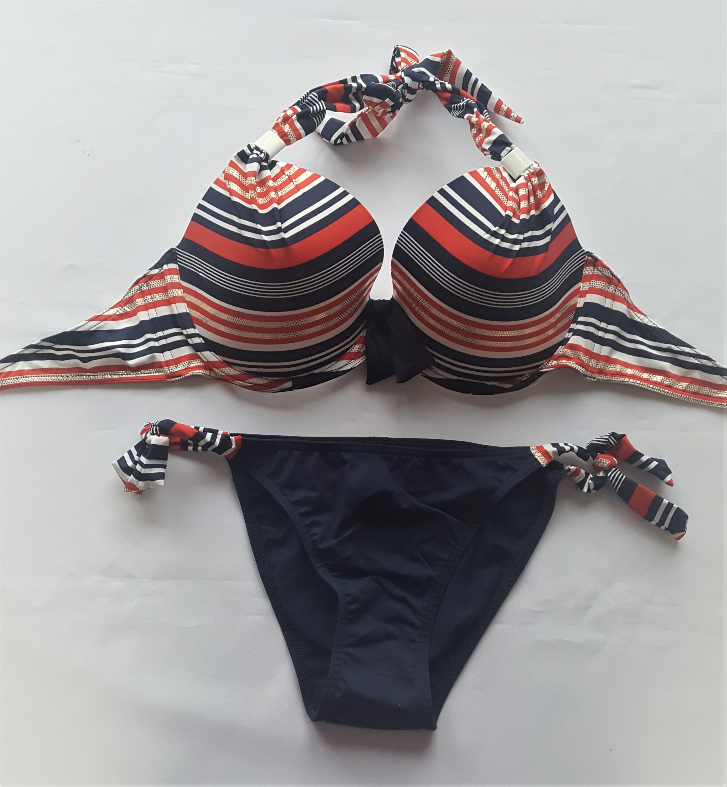 Dámské plavky mají lehce vyztužené lisované košíčky s kosticí. Podprsenka má nižší střed.