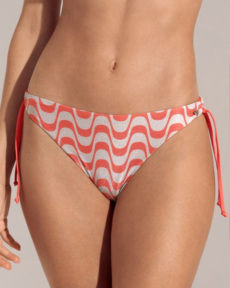 Kalhotky jsou klasického bikinového střihu se zavazováním po boku.