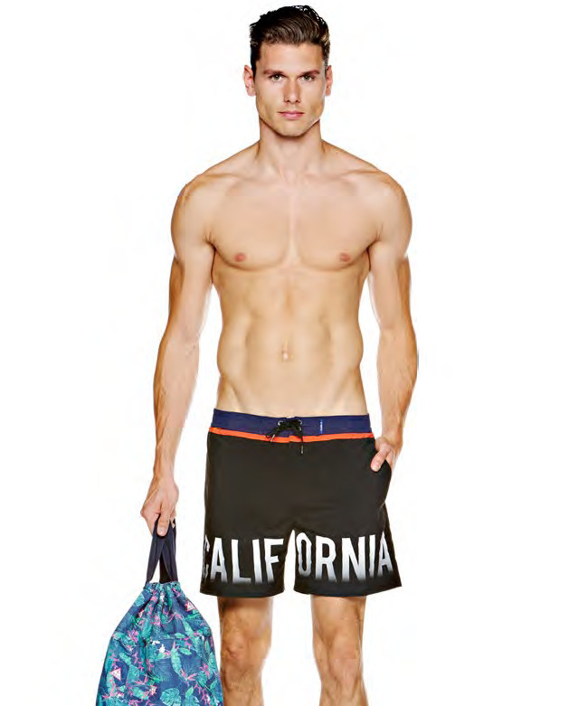 komfortní pánské koupací šortky kolekce GUESS s fashion nápisem California.